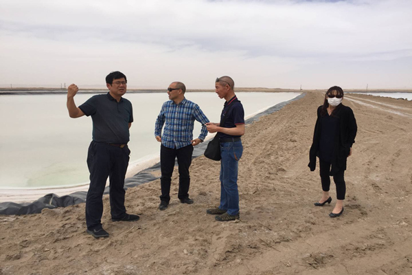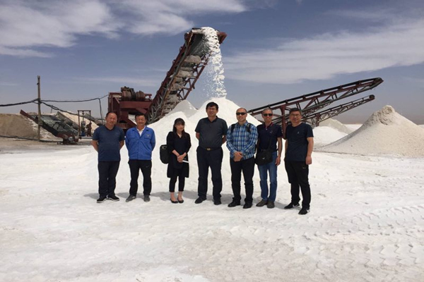 对食用盐生产线考察结束后,总经理许新军带领客户前往盐湖生产一线,对再生盐、原生盐生产工艺和盐湖改造情况进行了一一介绍。