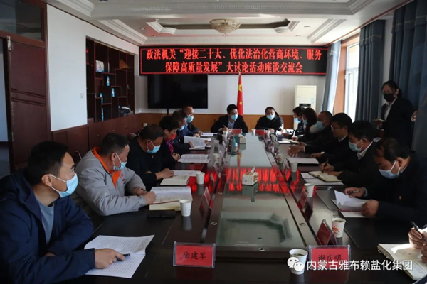 阿右旗委政法委来雅盐化集团公司组织召开“迎接二十大、优化法治化营商环境、服务保障高质量发展”大讨论活动研讨交流会