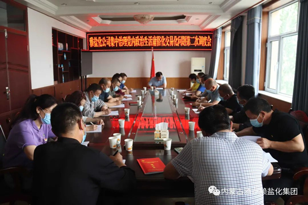 5月25日,雅盐化集团公司召开集中治理党内政治生活庸俗化交易化问题第二次调度会,总结前一阶段集中治理工作开展情况,分析研究存在的问题,安排部署下一阶段重点工作。集团公司党委书记、董事长李奎锦主持会议并讲话,集团公司党委委员、中层管理人员参加。