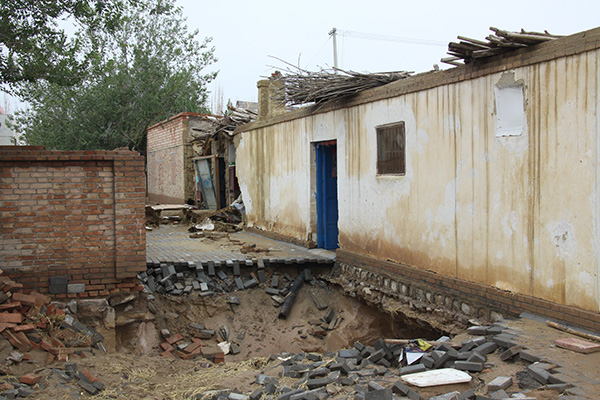 居民院落外墙被泡塌