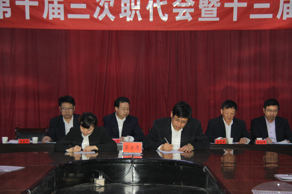 会上,表彰奖励了公司2016年度先进集体及个人;通报了公司2016年获得外部荣誉的先进集体和个人;按“厂务公开”的规定,公开和通报了公司技术改造、设备更新、职工“五险一金”缴返、业务招待费用相关情况及2017年生产经营计划; 集团公司总经理许新军与工会主席张菊萍签订了《2017年工资集体协商合同》。最后、集团公司总经理许新军就职工代表提出的提案和分组讨论意见现场逐一进行了答复和说明。